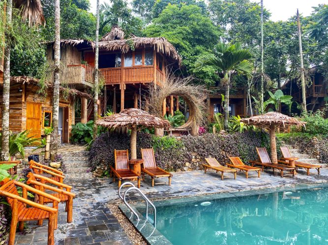 About 175km from Hanoi city, Pu Luong Natura Bungalow lies in the pristine Pu Luong forest, surrounded by exquisite scenery of amazing terraced fields and endless mountainous landscapes. With the whole area of 5.000sqm, and swimming pool overlooking the breathtaking view of valleys, terraced fields and mountains.