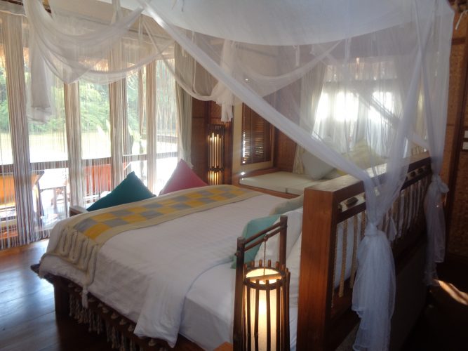 The FloatHouse River Kwai floating resort is considered as “”One of the best elegant Kanchanaburi hotels”” which aims to be the world’s best floating villas. The FloatHouse River Kwai Resort is a nature hideaway and can be found in very few places in the world. Each luxurious and spacious floating villa is totally private and rich in custom tailored-made teakwood furniture with thatched roofing creating a smooth blend between local artistic traditions and the natural environment.